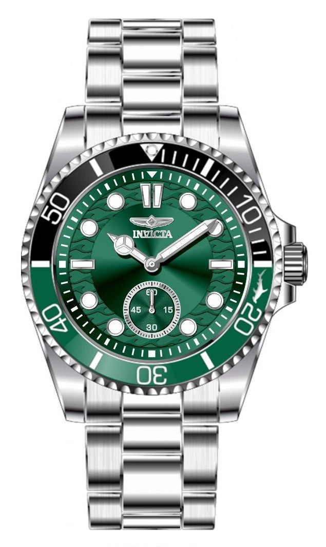 Band Material: Stainless Steel, Band Tone: Steel, Band Width: 22MM, Band Length: 185MM, Crown Type: Screw Down, Case Material: Stainless Steel, Case Tone: Steel, Case Size [mm]: 43, Case Back: Solid, Material of Hands: Brass, Color of Hands: Silver,Luminous, Crystal Type: Mineral, Bezel Material: Stainless Steel,Aluminum, Dial Material: Brass, Dial Color: Green, Dial Pattern: Sun-ray Finish .Purchasing these parts and having a non-authorized repair center open your watch voids all manufacturing warranties. Invicta cannot guarantee the quality standards of an altered timepiece, the standard 3-year limited warranty on Invicta timepieces shall be invalid if the timepiece is serviced at any time by an unauthorized repair center. This includes battery replacements, which must be done at an Invicta authorized repair center in order to maintain the eligibility of the warranty. Please follow the link below to learn more about Invicta's warranty.https://cdn.invictawatch.com/www/files/invicta-warranty-2018.pdf