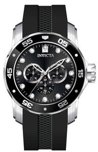 Band Material: Silicone, Band Tone: Black, Band Width: 26MM, Band Length: 200MM, Crown Type: Push, Case Material: Stainless Steel, Case Tone: Steel, Case Size [mm]: 48, Case Back: Solid, Material of Hands: Metal, Color of Hands: Silver, Crystal Type: Flame Fusion, Bezel Material: Stainless Steel,Aluminum, Dial Material: Metal, Dial Color: Black, Dial Pattern: Sun-ray Finish .Purchasing these parts and having a non-authorized repair center open your watch voids all manufacturing warranties. Invicta cannot guarantee the quality standards of an altered timepiece, the standard 3-year limited warranty on Invicta timepieces shall be invalid if the timepiece is serviced at any time by an unauthorized repair center. This includes battery replacements, which must be done at an Invicta authorized repair center in order to maintain the eligibility of the warranty. Please follow the link below to learn more about Invicta's warranty.https://cdn.invictawatch.com/www/files/invicta-warranty-2018.pdf
