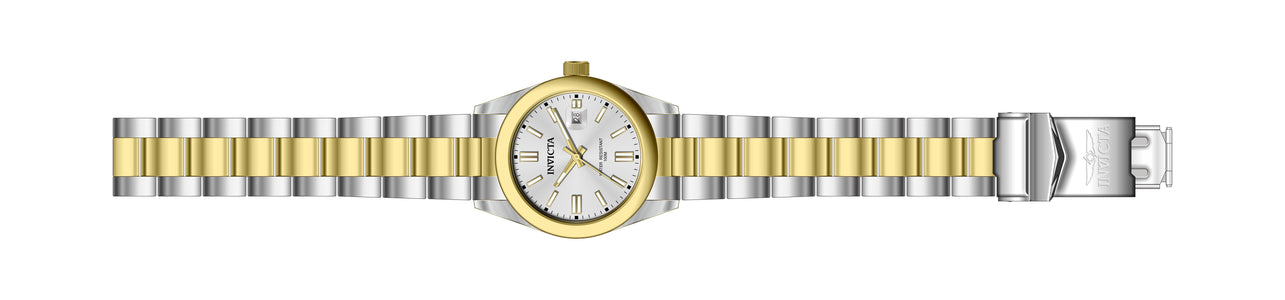 INVICTA Pro Diver Lady 38mm Stainless Steel Gold + Steel Grey dial PC32 Quartz , Band Material: Stainless Steel, Band Tone: Steel,Gold, Band Size [mm]: 20, Band Length [mm]: 205, Buckle Type: Fold over , Crown Type : Push, Case Material : Stainless Steel, Case Tone : Gold,Steel, Case Size (mm) : 38, Case Back : Solid, Material of Hands : Metal, Color of Hands : Gold,Luminous, Crystal Type : Mineral, Bezel Material : Stainless Steel, Dial Material : Metal, Dial Color : Grey, Dial Pattern : Sun-ray Finish .Purchasing these parts and having a non-authorized repair center open your watch voids all manufacturing warranties. Invicta cannot guarantee the quality standards of an altered timepiece, the standard 3-year limited warranty on Invicta timepieces shall be invalid if the timepiece is serviced at any time by an unauthorized repair center. This includes battery replacements, which must be done at an Invicta authorized repair center in order to maintain the eligibility of the warranty. Please follow the link below to learn more about Invicta's warranty.https://cdn.invictawatch.com/www/files/invicta-warranty-2018.pdf