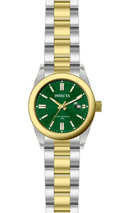 INVICTA Pro Diver Lady 38mm Stainless Steel Gold + Steel Green dial PC32 Quartz , Band Material: Stainless Steel, Band Tone: Steel,Gold, Band Size [mm]: 20, Band Length [mm]: 205, Buckle Type: Fold over , Crown Type : Push, Case Material : Stainless Steel, Case Tone : Gold,Steel, Case Size (mm) : 38, Case Back : Solid, Material of Hands : Metal, Color of Hands : Gold,Luminous, Crystal Type : Mineral, Bezel Material : Stainless Steel, Dial Material : Metal, Dial Color : Green, Dial Pattern : Sun-ray Finish .Purchasing these parts and having a non-authorized repair center open your watch voids all manufacturing warranties. Invicta cannot guarantee the quality standards of an altered timepiece, the standard 3-year limited warranty on Invicta timepieces shall be invalid if the timepiece is serviced at any time by an unauthorized repair center. This includes battery replacements, which must be done at an Invicta authorized repair center in order to maintain the eligibility of the warranty. Please follow the link below to learn more about Invicta's warranty.https://cdn.invictawatch.com/www/files/invicta-warranty-2018.pdf