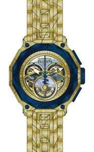 Band Material: Stainless Steel, Band Tone: Gold, Band Width: 30MM, Band Length: 210MM, Buckle Type: Fold over safety, Clasp Type: Safety,Deployment, Crown Type : Screw Down, Case Material : Stainless Steel, Case Tone : Gold,Dark Blue, Case Size [mm] : 52, Case Back : Solid, Material of Hands : Metal, Color of Hands : Blue,Gold,Luminous, Crystal Type : Flame Fusion, Bezel Material : Stainless Steel, Dial Material : Metal,Mother of Pearl,Oyster,Abalone, Dial Color : Blue,Platinum,Gold,Titanium, Dial Pattern : Sun-ray Finish .Purchasing these parts and having a non-authorized repair center open your watch voids all manufacturing warranties. Invicta cannot guarantee the quality standards of an altered timepiece, the standard 3-year limited warranty on Invicta timepieces shall be invalid if the timepiece is serviced at any time by an unauthorized repair center. This includes battery replacements, which must be done at an Invicta authorized repair center in order to maintain the eligibility of the warranty. Please follow the link below to learn more about Invicta's warranty.https://cdn.invictawatch.com/www/files/invicta-warranty-2018.pdf