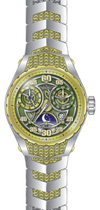 Band Material: Stainless Steel, Band Tone: Steel,Gold, Band Width: 36.05MM, Band Length: 200MM, Crown Type: Screw Down, Case Material: Stainless Steel, Case Tone: Gold,Steel, Case Size [mm]: 48.50, Case Back: Exhibition screwed, Material of Hands: Metal, Color of Hands: Silver,Gold,Luminous,Steel blue, Crystal Type: Flame Fusion, Bezel Material: Stainless Steel, Dial Material: Metal, Dial Color: Silver,Gold,Light Green, Dial Pattern: Sun-ray Finish .Purchasing these parts and having a non-authorized repair center open your watch voids all manufacturing warranties. Invicta cannot guarantee the quality standards of an altered timepiece, the standard 3-year limited warranty on Invicta timepieces shall be invalid if the timepiece is serviced at any time by an unauthorized repair center. This includes battery replacements, which must be done at an Invicta authorized repair center in order to maintain the eligibility of the warranty. Please follow the link below to learn more about Invicta's warranty.https://cdn.invictawatch.com/www/files/invicta-warranty-2018.pdf