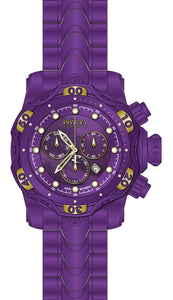 Band Material: Stainless Steel, Band Tone: Purple, Band Width: 28MM, Band Length: 210MM, Crown Type: Screw Down, Case Material: Stainless Steel,Aluminum, Case Tone: Purple, Case Size [mm]: 58, Case Back: Solid, Material of Hands: Metal, Color of Hands: Gold,Luminous, Crystal Type: Flame Fusion, Bezel Material: Stainless Steel,Aluminum, Dial Material: Metal,Mother of Pearl,Oyster, Dial Color: Purple, Dial Pattern: None .Purchasing these parts and having a non-authorized repair center open your watch voids all manufacturing warranties. Invicta cannot guarantee the quality standards of an altered timepiece, the standard 3-year limited warranty on Invicta timepieces shall be invalid if the timepiece is serviced at any time by an unauthorized repair center. This includes battery replacements, which must be done at an Invicta authorized repair center in order to maintain the eligibility of the warranty. Please follow the link below to learn more about Invicta's warranty.https://cdn.invictawatch.com/www/files/invicta-warranty-2018.pdf