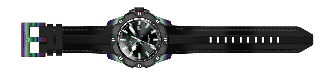 INVICTA Specialty Men 51mm Stainless Steel Iridescent Black dial PC32 Quartz , Band Material: Silicone, Band Tone: Black, Band Size [mm]: 26, Band Length [mm]: 210, Buckle Type: Buckle , Crown Type : Push, Case Material : Stainless Steel, Case Tone : Iridescent, Case Size (mm) : 51, Case Back : Solid, Material of Hands : Metal, Color of Hands : White,Iridescent, Crystal Type : Flame Fusion, Bezel Material : Stainless Steel, Dial Material : Metal, Dial Color : Black, Dial Pattern : Sun-ray Finish .Purchasing these parts and having a non-authorized repair center open your watch voids all manufacturing warranties. Invicta cannot guarantee the quality standards of an altered timepiece, the standard 3-year limited warranty on Invicta timepieces shall be invalid if the timepiece is serviced at any time by an unauthorized repair center. This includes battery replacements, which must be done at an Invicta authorized repair center in order to maintain the eligibility of the warranty. Please follow the link below to learn more about Invicta's warranty.https://cdn.invictawatch.com/www/files/invicta-warranty-2018.pdf