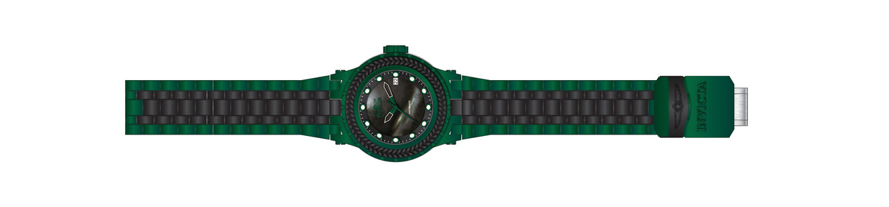 INVICTA Specialty men 44mm Stainless Steel Black + Green Black dial NH35A Automatic , Band Material: Stainless Steel, Band Tone: Black,Green, Band Size [mm]: 26, Band Length [mm]: 210, Buckle Type: Fold over safety , Crown Type : Screw Down, Case Material : Stainless Steel, Case Tone : Black,Green, Case Size (mm) : 44, Case Back : Exhibition, Material of Hands : Metal, Color of Hands : Green,Luminous, Crystal Type : Flame Fusion, Bezel Material : Stainless Steel, Dial Material : Metal,Mother of Pearl,Oyster, Dial Color : Black, Dial Pattern : None .Purchasing these parts and having a non-authorized repair center open your watch voids all manufacturing warranties. Invicta cannot guarantee the quality standards of an altered timepiece, the standard 3-year limited warranty on Invicta timepieces shall be invalid if the timepiece is serviced at any time by an unauthorized repair center. This includes battery replacements, which must be done at an Invicta authorized repair center in order to maintain the eligibility of the warranty. Please follow the link below to learn more about Invicta's warranty.https://cdn.invictawatch.com/www/files/invicta-warranty-2018.pdf
