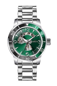 INVICTA Specialty Men 45mm Stainless Steel Steel Green dial JSD-006SY Mechanical , Band Material: Stainless Steel, Band Tone: Steel, Band Size [mm]: 22, Band Length [mm]: 190, Buckle Type: Fold over safety , Crown Type : Push, Case Material : Stainless Steel, Case Tone : Steel, Case Size (mm) : 45, Case Back : Exhibition, Material of Hands : Metal, Color of Hands : Steel, Crystal Type : Flame Fusion, Bezel Material : Stainless Steel, Dial Material : Metal, Dial Color : Green .Purchasing these parts and having a non-authorized repair center open your watch voids all manufacturing warranties. Invicta cannot guarantee the quality standards of an altered timepiece, the standard 3-year limited warranty on Invicta timepieces shall be invalid if the timepiece is serviced at any time by an unauthorized repair center. This includes battery replacements, which must be done at an Invicta authorized repair center in order to maintain the eligibility of the warranty. Please follow the link below to learn more about Invicta's warranty.https://cdn.invictawatch.com/www/files/invicta-warranty-2018.pdf