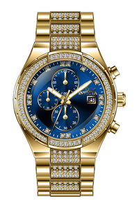 INVICTA Specialty Men 45mm Stainless Steel Gold Blue dial VD57 Quartz , Band Material: Stainless Steel,Crystal, Band Tone: Gold, Band Size [mm]: 26, Band Length [mm]: 190, Buckle Type: Fold over safety , Crown Type : Push, Case Material : Stainless Steel, Case Tone : Gold, Case Size (mm) : 45, Case Back : Solid, Material of Hands : Metal, Color of Hands : Gold, Crystal Type : Flame Fusion, Bezel Material : Stainless Steel,Crystal, Dial Material : Metal, Dial Color : Blue, Dial Pattern : Sun-ray Finish .Purchasing these parts and having a non-authorized repair center open your watch voids all manufacturing warranties. Invicta cannot guarantee the quality standards of an altered timepiece, the standard 3-year limited warranty on Invicta timepieces shall be invalid if the timepiece is serviced at any time by an unauthorized repair center. This includes battery replacements, which must be done at an Invicta authorized repair center in order to maintain the eligibility of the warranty. Please follow the link below to learn more about Invicta's warranty.https://cdn.invictawatch.com/www/files/invicta-warranty-2018.pdf