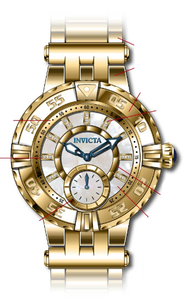 INVICTA Subaqua Lady 38mm Stainless Steel Gold White dial VD78 Quartz , Band Material: Stainless Steel, Band Tone: Gold, Band Size [mm]: 18, Band Length [mm]: 175, Buckle Type: Butterfly push button , Crown Type : Push, Case Material : Stainless Steel, Case Tone : Gold, Case Size (mm) : 38, Case Back : Solid, Material of Hands : Metal, Color of Hands : White,Blue, Crystal Type : Flame Fusion, Bezel Material : Stainless Steel, Dial Material : Metal,Mother of Pearl, Dial Color : White, Dial Pattern : None .Purchasing these parts and having a non-authorized repair center open your watch voids all manufacturing warranties. Invicta cannot guarantee the quality standards of an altered timepiece, the standard 3-year limited warranty on Invicta timepieces shall be invalid if the timepiece is serviced at any time by an unauthorized repair center. This includes battery replacements, which must be done at an Invicta authorized repair center in order to maintain the eligibility of the warranty. Please follow the link below to learn more about Invicta's warranty.https://cdn.invictawatch.com/www/files/invicta-warranty-2018.pdf