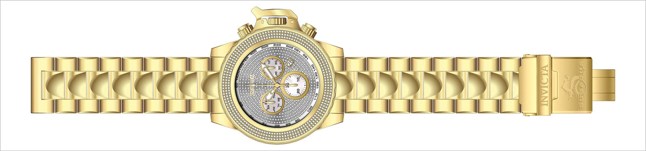 Band Material: Stainless Steel, Band Tone: Gold, Band Width: 26MM, Band Length: 225MM, Crown Type: Screw Down, Case Material: Stainless Steel, Case Tone: Gold, Case Size [mm]: 55, Case Back: Solid, Material of Hands: Metal, Color of Hands: Gold,Luminous, Crystal Type: Flame Fusion, Bezel Material: Stainless Steel, Dial Material: Mother of Pearl,Pave, Dial Color: White,Rhodium, Dial Pattern: None .Purchasing these parts and having a non-authorized repair center open your watch voids all manufacturing warranties. Invicta cannot guarantee the quality standards of an altered timepiece, the standard 3-year limited warranty on Invicta timepieces shall be invalid if the timepiece is serviced at any time by an unauthorized repair center. This includes battery replacements, which must be done at an Invicta authorized repair center in order to maintain the eligibility of the warranty. Please follow the link below to learn more about Invicta's warranty.https://cdn.invictawatch.com/www/files/invicta-warranty-2018.pdf