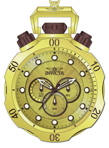 INVICTA Venom Men 58.00mm Stainless Steel Gold + Brown Gold dial VD55 Quartz , Band Material: None, Band Tone: None, Band Size [mm]: 0, Band Length [mm]: 0, Buckle Type: None , Crown Type : Screw Down, Case Material : Stainless Steel, Case Tone : Gold,Brown, Case Size (mm) : 58, Case Back : Solid, Material of Hands : Metal, Color of Hands : Brown,Luminous, Crystal Type : Mineral, Bezel Material : Stainless Steel, Dial Material : Metal, Dial Color : Gold, Dial Pattern : Sun-ray Finish .Purchasing these parts and having a non-authorized repair center open your watch voids all manufacturing warranties. Invicta cannot guarantee the quality standards of an altered timepiece, the standard 3-year limited warranty on Invicta timepieces shall be invalid if the timepiece is serviced at any time by an unauthorized repair center. This includes battery replacements, which must be done at an Invicta authorized repair center in order to maintain the eligibility of the warranty. Please follow the link below to learn more about Invicta's warranty.https://cdn.invictawatch.com/www/files/invicta-warranty-2018.pdf
