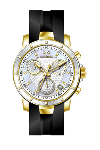 Band Material: Silicone, Band Tone: Black, Band Width: 20MM, Band Length: 185MM, Crown Type: Push, Case Material: Stainless Steel,Plastic, Case Tone: Gold, Case Size [mm]: 38, Case Back: Solid, Material of Hands: Metal, Color of Hands: Gold, Crystal Type: Flame Fusion, Bezel Material: Stainless Steel, Dial Material: Oyster, Dial Color: White .Purchasing these parts and having a non-authorized repair center open your watch voids all manufacturing warranties. Invicta cannot guarantee the quality standards of an altered timepiece, the standard 3-year limited warranty on Invicta timepieces shall be invalid if the timepiece is serviced at any time by an unauthorized repair center. This includes battery replacements, which must be done at an Invicta authorized repair center in order to maintain the eligibility of the warranty. Please follow the link below to learn more about Invicta's warranty.https://cdn.invictawatch.com/www/files/invicta-warranty-2018.pdf