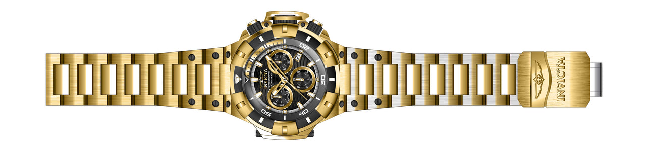 INVICTA Akula Men 52.5mm Stainless Steel Gold Black dial Z60 FE Quartz , Band Material: Stainless Steel, Band Tone: Gold,Black, Band Size [mm]: 30, Band Length [mm]: 210, Buckle Type: Fold over safety , Crown Type : Push, Case Material : Stainless Steel, Case Tone : Gold, Case Size (mm) : 52.5, Case Back : Exhibition, Material of Hands : Metal, Color of Hands : Gold, Crystal Type : Flame Fusion, Bezel Material : Stainless Steel, Dial Material : Metal, Dial Color : Black, Dial Pattern : Sun-ray Finish .Purchasing these parts and having a non-authorized repair center open your watch voids all manufacturing warranties. Invicta cannot guarantee the quality standards of an altered timepiece, the standard 3-year limited warranty on Invicta timepieces shall be invalid if the timepiece is serviced at any time by an unauthorized repair center. This includes battery replacements, which must be done at an Invicta authorized repair center in order to maintain the eligibility of the warranty. Please follow the link below to learn more about Invicta's warranty.https://cdn.invictawatch.com/www/files/invicta-warranty-2018.pdf