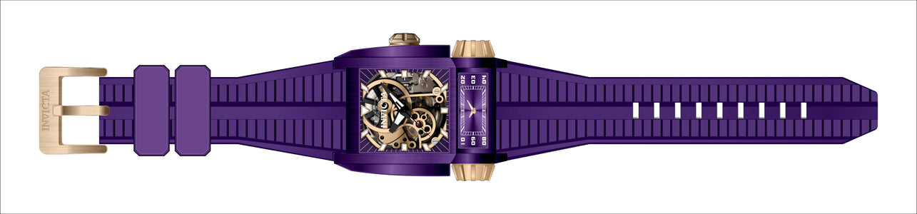 INVICTA Akula Men 43mm Stainless Steel Rose Gold + Purple Rose Gold+Purple dial TY2809 (Black) Automatic , Band Material: Silicone, Band Tone: Purple, Band Size [mm]: 32, Band Length [mm]: 220, Buckle Type: Buckle , Crown Type : Push, Case Material : Stainless Steel, Case Tone : Rose Gold,Purple, Case Size (mm) : 43, Case Back : Exhibition, Material of Hands : Metal, Color of Hands : Black,Luminous, Crystal Type : Flame Fusion, Dial Material : Metal, Dial Color : Rose Gold,Purple, Dial Pattern : Skeleton Design .Purchasing these parts and having a non-authorized repair center open your watch voids all manufacturing warranties. Invicta cannot guarantee the quality standards of an altered timepiece, the standard 3-year limited warranty on Invicta timepieces shall be invalid if the timepiece is serviced at any time by an unauthorized repair center. This includes battery replacements, which must be done at an Invicta authorized repair center in order to maintain the eligibility of the warranty. Please follow the link below to learn more about Invicta's warranty.https://cdn.invictawatch.com/www/files/invicta-warranty-2018.pdf
