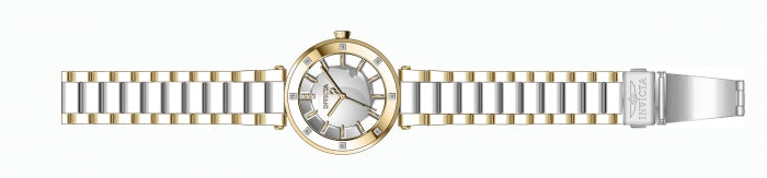 Band for Invicta Angel 23725, Band Material: Stainless Steel, Band Color: Gold, Steel, Band Size (in mm): 22, Band Length (in mm): 171, Buckle Type: Regular, Clasp Type: Regular. Please note that bands do not ship with spring bars or T bars. If you need these parts, please add them to your cart with the corresponding part sku.