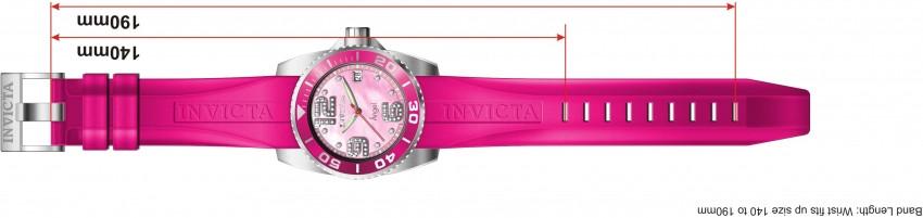 Individual Spare PARTS For Lady Invicta Angel 1058, Band Material Polyurethane, Band Color Pink, Band Width 20 MM, Band Length 190 MM, Buckle Type Regular, Clasp Type Regular, Crown Type (Movement 1) Push, Case Material Stainless Steel, Case Tone Steel, Case Size (mm) 38, Case Back Solid, Material of Hands Metal, Color of Hands Silver, Luminous, Crystal Type Mineral, Bezel Material Stainless Steel, Dial Material Mother of Pearl, Dial Color Pink, Dial Pattern NonePurchasing these parts and having a non-authorized repair center open your watch voids all manufacturing warranties. Invicta cannot guarantee the quality standards of an altered timepiece, the standard 3-year limited warranty on Invicta timepieces shall be invalid if the timepiece is serviced at any time by an unauthorized repair center. This includes battery replacements, which must be done at an Invicta authorized repair center in order to maintain the eligibility of the warranty. Please follow the link below to learn more about Invicta's warranty.https://cdn.invictawatch.com/www/files/invicta-warranty-2018.pdf