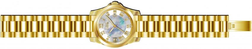 Individual Spare PARTS For Lady Invicta Angel 15235, Band Material Stainless Steel, Band Color Gold, Band Width 18 MM, Band Length 210 MM, Buckle Type Butterfly, Clasp Type Butterfly, Crown Type (Movement 1) Push, Case Material Stainless Steel, Case Tone Gold, Case Size (mm) 35, Case Back Solid, Material of Hands Metal, Color of Hands Gold, Crystal Type Flame Fusion, Bezel Material Stainless Steel, Dial Material Metal, Mother of Pearl, Dial Color White, Dial Pattern Double LayeredPurchasing these parts and having a non-authorized repair center open your watch voids all manufacturing warranties. Invicta cannot guarantee the quality standards of an altered timepiece, the standard 3-year limited warranty on Invicta timepieces shall be invalid if the timepiece is serviced at any time by an unauthorized repair center. This includes battery replacements, which must be done at an Invicta authorized repair center in order to maintain the eligibility of the warranty. Please follow the link below to learn more about Invicta's warranty.https://cdn.invictawatch.com/www/files/invicta-warranty-2018.pdf