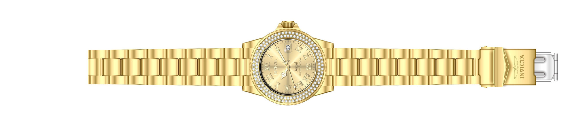 Individual Spare PARTS For Invicta Angel 24614, Band Material: Stainless Steel, Band Tone: Gold, Band Size (mm): 20, Band Length (mm): 210, Buckle Type: Diver, Clasp Type: Foldover, Safety, Crown Type Screw Down, Case Material Stainless Steel, Case Tone Gold, Case Size (mm) 40, Case Back Solid, Material of Hands Metal, Color of Hands Gold, Luminous, Crystal Type Mineral, Bezel Material Stainless Steel, Dial Material Metal, Dial Color Gold, Dial Pattern SunrayPurchasing these parts and having a non-authorized repair center open your watch voids all manufacturing warranties. Invicta cannot guarantee the quality standards of an altered timepiece, the standard 3-year limited warranty on Invicta timepieces shall be invalid if the timepiece is serviced at any time by an unauthorized repair center. This includes battery replacements, which must be done at an Invicta authorized repair center in order to maintain the eligibility of the warranty. Please follow the link below to learn more about Invicta's warranty.https://cdn.invictawatch.com/www/files/invicta-warranty-2018.pdf