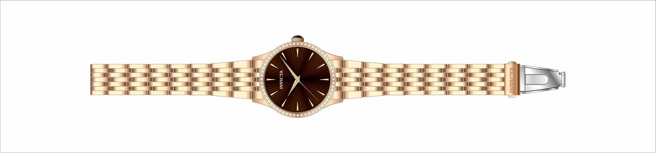 INVICTA Angel Lady 35mm Stainless Steel Rose Gold Brown dial PC21J Quartz , Band Material: Stainless Steel, Band Tone: Rose Gold, Band Size [mm]: 18, Band Length [mm]: 190, Buckle Type: Fold over push button , Crown Type : Push, Case Material : Stainless Steel, Case Tone : Rose Gold, Case Size (mm) : 35, Case Back : Solid, Material of Hands : Metal, Color of Hands : Rose Gold, Crystal Type : Flame Fusion, Bezel Material : None, Dial Material : Metal, Dial Color : Brown, Dial Pattern : Textured Pattern .Purchasing these parts and having a non-authorized repair center open your watch voids all manufacturing warranties. Invicta cannot guarantee the quality standards of an altered timepiece, the standard 3-year limited warranty on Invicta timepieces shall be invalid if the timepiece is serviced at any time by an unauthorized repair center. This includes battery replacements, which must be done at an Invicta authorized repair center in order to maintain the eligibility of the warranty. Please follow the link below to learn more about Invicta's warranty.https://cdn.invictawatch.com/www/files/invicta-warranty-2018.pdf