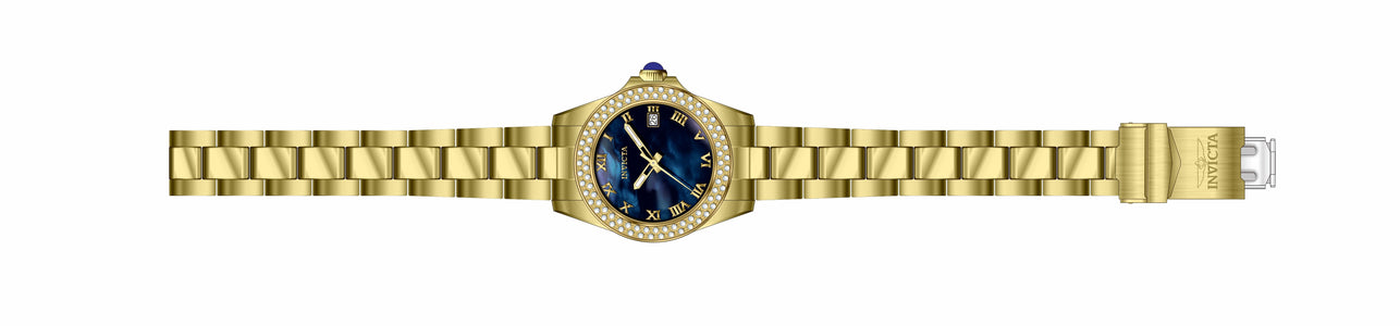 INVICTA Angel Lady 34mm Stainless Steel Gold Blue dial PC32A Quartz , Band Material: Stainless Steel, Band Tone: Gold, Band Size [mm]: 16, Band Length [mm]: 195, Buckle Type: Fold over safety , Crown Type : Push, Case Material : Stainless Steel, Case Tone : Gold, Case Size (mm) : 34, Case Back : Solid, Material of Hands : Metal, Color of Hands : Gold,Luminous, Crystal Type : Mineral, Bezel Material : Stainless Steel, Dial Material : Mother of Pearl, Dial Color : Blue, Dial Pattern : None .Purchasing these parts and having a non-authorized repair center open your watch voids all manufacturing warranties. Invicta cannot guarantee the quality standards of an altered timepiece, the standard 3-year limited warranty on Invicta timepieces shall be invalid if the timepiece is serviced at any time by an unauthorized repair center. This includes battery replacements, which must be done at an Invicta authorized repair center in order to maintain the eligibility of the warranty. Please follow the link below to learn more about Invicta's warranty.https://cdn.invictawatch.com/www/files/invicta-warranty-2018.pdf