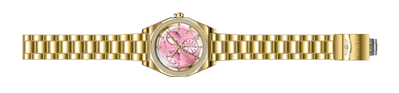 INVICTA Angel Lady 38mm Stainless Steel Gold Pink dial VH68 Quartz , Band Material: Stainless Steel, Band Tone: Gold, Band Size [mm]: 18, Band Length [mm]: 190, Buckle Type: Fold over safety , Crown Type : Push, Case Material : Stainless Steel, Case Tone : Gold, Case Size (mm) : 38, Case Back : Solid, Material of Hands : Metal, Color of Hands : Gold, Crystal Type : Flame Fusion, Bezel Material : Stainless Steel,Diamond, Dial Material : Metal, Dial Color : Pink .Purchasing these parts and having a non-authorized repair center open your watch voids all manufacturing warranties. Invicta cannot guarantee the quality standards of an altered timepiece, the standard 3-year limited warranty on Invicta timepieces shall be invalid if the timepiece is serviced at any time by an unauthorized repair center. This includes battery replacements, which must be done at an Invicta authorized repair center in order to maintain the eligibility of the warranty. Please follow the link below to learn more about Invicta's warranty.https://cdn.invictawatch.com/www/files/invicta-warranty-2018.pdf