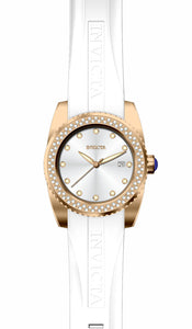 INVICTA Angel Lady 38mm Stainless Steel Rose Gold Silver dial PC32A Quartz , Band Material: Silicone, Band Tone: White, Band Size [mm]: 20, Band Length [mm]: 190, Buckle Type: Buckle , Crown Type : Push, Case Material : Stainless Steel, Case Tone : Rose Gold, Case Size (mm) : 38, Case Back : Solid, Material of Hands : Metal, Color of Hands : Rose Gold,Luminous, Crystal Type : Mineral, Bezel Material : Stainless Steel, Dial Material : Metal, Dial Color : Silver, Dial Pattern : Sun-ray Finish .Purchasing these parts and having a non-authorized repair center open your watch voids all manufacturing warranties. Invicta cannot guarantee the quality standards of an altered timepiece, the standard 3-year limited warranty on Invicta timepieces shall be invalid if the timepiece is serviced at any time by an unauthorized repair center. This includes battery replacements, which must be done at an Invicta authorized repair center in order to maintain the eligibility of the warranty. Please follow the link below to learn more about Invicta's warranty.https://cdn.invictawatch.com/www/files/invicta-warranty-2018.pdf