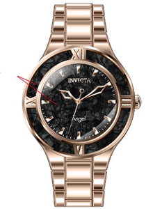 INVICTA Angel Lady 36mm Stainless Steel + Resin Rose Gold Black dial PC21 Quartz , Band Material: Stainless Steel, Band Tone: Rose Gold, Band Size [mm]: 18, Band Length [mm]: 175, Buckle Type: Fold over push button , Crown Type : Push, Case Material : Stainless Steel,Resin, Case Tone : Rose Gold, Case Size (mm) : 36, Case Back : Solid, Material of Hands : Metal, Color of Hands : Rose Gold, Crystal Type : Flame Fusion, Bezel Material : Stainless Steel, Dial Material : Resin, Dial Color : Black .Purchasing these parts and having a non-authorized repair center open your watch voids all manufacturing warranties. Invicta cannot guarantee the quality standards of an altered timepiece, the standard 3-year limited warranty on Invicta timepieces shall be invalid if the timepiece is serviced at any time by an unauthorized repair center. This includes battery replacements, which must be done at an Invicta authorized repair center in order to maintain the eligibility of the warranty. Please follow the link below to learn more about Invicta's warranty.https://cdn.invictawatch.com/www/files/invicta-warranty-2018.pdf