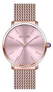 Band Material: Stainless Steel, Band Tone: Rose Gold, Band Width: 18MM, Band Length: 185MM, Crown Type: Push, Case Material: Stainless Steel, Case Tone: Rose Gold, Case Size [mm]: 38, Case Back: Solid, Material of Hands: Brass, Color of Hands: Rose Gold, Crystal Type: Mineral, Bezel Material: None, Dial Material: Brass, Dial Color: Pink, Dial Pattern: Sun-ray Finish .Purchasing these parts and having a non-authorized repair center open your watch voids all manufacturing warranties. Invicta cannot guarantee the quality standards of an altered timepiece, the standard 3-year limited warranty on Invicta timepieces shall be invalid if the timepiece is serviced at any time by an unauthorized repair center. This includes battery replacements, which must be done at an Invicta authorized repair center in order to maintain the eligibility of the warranty. Please follow the link below to learn more about Invicta's warranty.https://cdn.invictawatch.com/www/files/invicta-warranty-2018.pdf