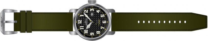 Band For Men Invicta Aviator 23073, Band Material Rifle, Band Color Green, Band Width 26 MM, Band Length 210 MM, Buckle Type Regular, Clasp Type Regular. Please note that bands do not ship with spring bars or T bars. If you need these parts, please add them to your cart with the corresponding part sku.