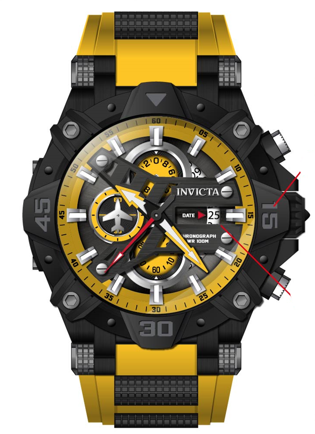 Band Material: Stainless Steel,Silicone, Band Tone: Black,Yellow, Band Size [mm]: 31, Band Length [mm]: 210, Buckle Type: Buckle . Please note that bands do not ship with spring bars or T bars. If you need these parts, please add them to your cart with the corresponding part sku.