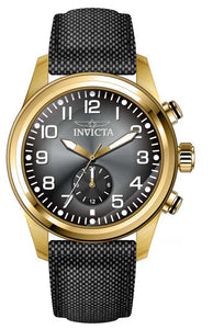 INVICTA Aviator Men 47mm Stainless Steel Gold Black dial VH60 Quartz , Band Material: Leather, Band Tone: Black, Band Size [mm]: 24, Band Length [mm]: 210, Buckle Type: Buckle , Crown Type : Push, Case Material : Stainless Steel, Case Tone : Gold, Case Size (mm) : 47, Case Back : Solid, Material of Hands : Metal, Color of Hands : Gold, Crystal Type : Flame Fusion, Bezel Material : Stainless Steel, Dial Material : Metal, Dial Color : Black, Dial Pattern : Brushed Finish .Purchasing these parts and having a non-authorized repair center open your watch voids all manufacturing warranties. Invicta cannot guarantee the quality standards of an altered timepiece, the standard 3-year limited warranty on Invicta timepieces shall be invalid if the timepiece is serviced at any time by an unauthorized repair center. This includes battery replacements, which must be done at an Invicta authorized repair center in order to maintain the eligibility of the warranty. Please follow the link below to learn more about Invicta's warranty.https://cdn.invictawatch.com/www/files/invicta-warranty-2018.pdf