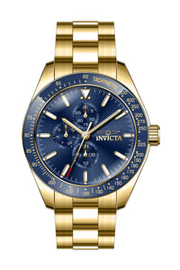 INVICTA Aviator Men 45mm Stainless Steel Gold Blue dial VH67 Quartz , Band Material: Stainless Steel, Band Tone: Gold, Band Size [mm]: 22, Band Length [mm]: 210, Buckle Type: Fold over safety , Crown Type : Push, Case Material : Stainless Steel, Case Tone : Gold, Case Size (mm) : 45, Case Back : Solid, Material of Hands : Metal, Color of Hands : White,Red,Gold, Crystal Type : Flame Fusion, Bezel Material : Stainless Steel, Dial Material : Metal, Dial Color : Blue, Dial Pattern : Sun-ray Finish .Purchasing these parts and having a non-authorized repair center open your watch voids all manufacturing warranties. Invicta cannot guarantee the quality standards of an altered timepiece, the standard 3-year limited warranty on Invicta timepieces shall be invalid if the timepiece is serviced at any time by an unauthorized repair center. This includes battery replacements, which must be done at an Invicta authorized repair center in order to maintain the eligibility of the warranty. Please follow the link below to learn more about Invicta's warranty.https://cdn.invictawatch.com/www/files/invicta-warranty-2018.pdf