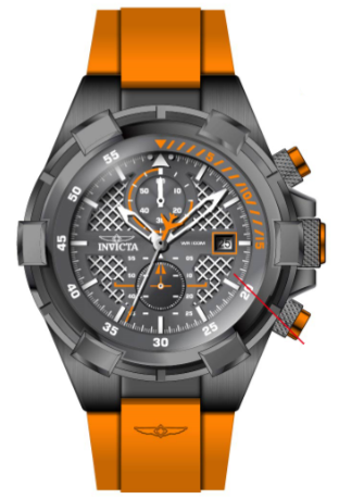 INVICTA Aviator Men 50.5mm Stainless Steel Grey Orange+Grey dial VD51 Quartz , Band Material: Silicone, Band Tone: Orange, Band Size [mm]: 26, Band Length [mm]: 210, Buckle Type: Buckle , Crown Type : Push, Case Material : Stainless Steel, Case Tone : Grey, Case Size (mm) : 50.5, Case Back : Solid, Material of Hands : Metal, Color of Hands : White,Orange,Grey, Crystal Type : Flame Fusion, Bezel Material : Stainless Steel, Dial Material : Metal, Dial Color : Orange,Grey, Dial Pattern : Sun-ray Finish .Purchasing these parts and having a non-authorized repair center open your watch voids all manufacturing warranties. Invicta cannot guarantee the quality standards of an altered timepiece, the standard 3-year limited warranty on Invicta timepieces shall be invalid if the timepiece is serviced at any time by an unauthorized repair center. This includes battery replacements, which must be done at an Invicta authorized repair center in order to maintain the eligibility of the warranty. Please follow the link below to learn more about Invicta's warranty.https://cdn.invictawatch.com/www/files/invicta-warranty-2018.pdf