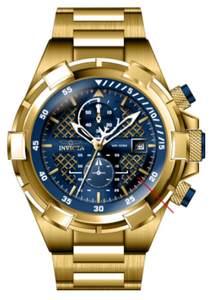 INVICTA Aviator Men 50.5mm Stainless Steel Gold Blue+Gold dial VD51 Quartz , Band Material: Stainless Steel, Band Tone: Gold, Band Size [mm]: 26, Band Length [mm]: 198, Buckle Type: Fold over safety , Crown Type : Push, Case Material : Stainless Steel, Case Tone : Gold, Case Size (mm) : 50.5, Case Back : Solid, Material of Hands : Metal, Color of Hands : White,Gold, Crystal Type : Flame Fusion, Bezel Material : Stainless Steel, Dial Material : Metal, Dial Color : Blue,Gold, Dial Pattern : Sun-ray Finish .Purchasing these parts and having a non-authorized repair center open your watch voids all manufacturing warranties. Invicta cannot guarantee the quality standards of an altered timepiece, the standard 3-year limited warranty on Invicta timepieces shall be invalid if the timepiece is serviced at any time by an unauthorized repair center. This includes battery replacements, which must be done at an Invicta authorized repair center in order to maintain the eligibility of the warranty. Please follow the link below to learn more about Invicta's warranty.https://cdn.invictawatch.com/www/files/invicta-warranty-2018.pdf