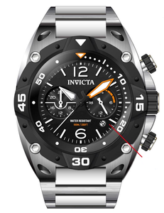 INVICTA Aviator Men 50mm Stainless Steel Silver Black dial VD31 Quartz , Band Material: Stainless Steel, Band Tone: Steel, Band Size [mm]: 30, Band Length [mm]: 197, Buckle Type: Fold over safety , Crown Type : Push, Case Material : Stainless Steel, Case Tone : Silver, Case Size (mm) : 50, Case Back : Solid, Material of Hands : Metal, Color of Hands : White,Orange, Crystal Type : Flame Fusion, Bezel Material : Stainless Steel, Dial Material : Metal, Dial Color : Black .Purchasing these parts and having a non-authorized repair center open your watch voids all manufacturing warranties. Invicta cannot guarantee the quality standards of an altered timepiece, the standard 3-year limited warranty on Invicta timepieces shall be invalid if the timepiece is serviced at any time by an unauthorized repair center. This includes battery replacements, which must be done at an Invicta authorized repair center in order to maintain the eligibility of the warranty. Please follow the link below to learn more about Invicta's warranty.https://cdn.invictawatch.com/www/files/invicta-warranty-2018.pdf