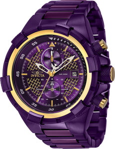 INVICTA Aviator Men 50.5mm Stainless Steel Purple Purple dial VD51 Quartz , Band Material: Stainless Steel, Band Tone: Purple, Band Size [mm]: 26, Band Length [mm]: 198, Buckle Type: Fold over safety , Crown Type : Push, Case Material : Stainless Steel, Case Tone : Purple, Case Size (mm) : 50.5, Case Back : Solid, Material of Hands : Metal, Color of Hands : White,Gold, Crystal Type : Flame Fusion, Bezel Material : Stainless Steel, Dial Material : Metal, Dial Color : Purple, Dial Pattern : Sun-ray Finish .Purchasing these parts and having a non-authorized repair center open your watch voids all manufacturing warranties. Invicta cannot guarantee the quality standards of an altered timepiece, the standard 3-year limited warranty on Invicta timepieces shall be invalid if the timepiece is serviced at any time by an unauthorized repair center. This includes battery replacements, which must be done at an Invicta authorized repair center in order to maintain the eligibility of the warranty. Please follow the link below to learn more about Invicta's warranty.https://cdn.invictawatch.com/www/files/invicta-warranty-2018.pdf