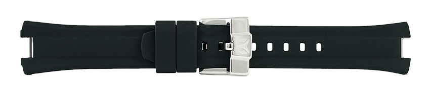 Band Material: Silicone, Band Tone: Black, Band Size: 14 mm, Band Length: 181mm, Clasp Type: Buckle, Clasp Tone: Stainless Steel Please note that bands do not ship with spring bars or T bars. If you need these parts, please add them to your cart with the corresponding part sku.