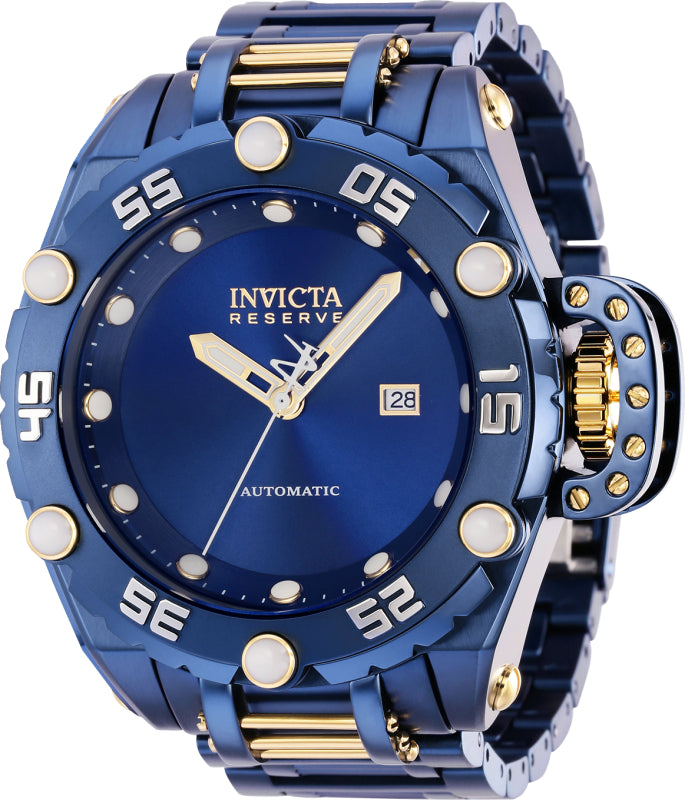 Band Material: Stainless Steel, Band Tone: Dark Blue, Gold, Band Width: 26.0MM, Band Length: 210MM, Buckle Type: Fold over safety, Clasp Type: Deployment, Safety, Please note that bands do not ship with spring bars or T bars. If you need these parts, please add them to your cart with the corresponding part sku.