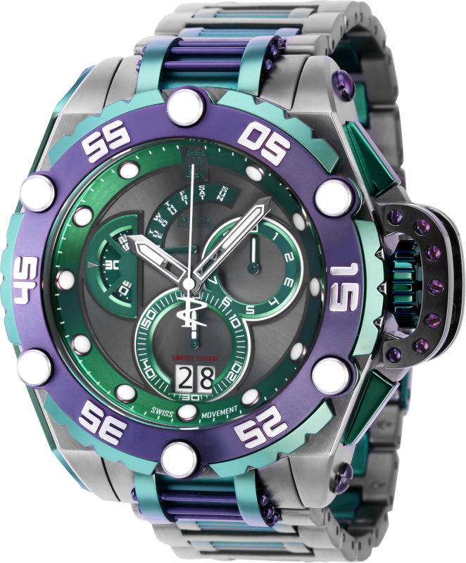 Band Material: Stainless Steel, Band Tone: Green, Purple, Titanium, Band Width: 26.0MM, Band Length: 210MM, Buckle Type: Fold over safety, Clasp Type: Deployment, Safety, Please note that bands do not ship with spring bars or T bars. If you need these parts, please add them to your cart with the corresponding part sku.