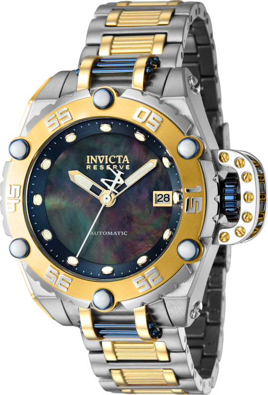 Band Material: Stainless Steel, Band Tone: Dark Blue, Gold, Steel, Band Width: 20.0MM, Band Length: 185MM, Buckle Type: Fold over safety, Clasp Type: Deployment, Safety, Please note that bands do not ship with spring bars or T bars. If you need these parts, please add them to your cart with the corresponding part sku.