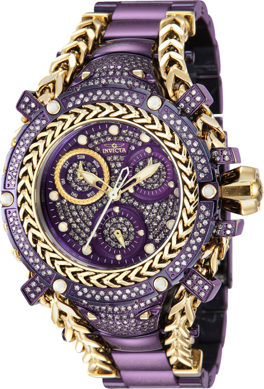 Band Material: Stainless Steel, Band Tone: Purple, Gold, Band Width: 28.0MM, Band Length: 185MM, Buckle Type: Fold over safety, Clasp Type: Deployment, Safety, Please note that bands do not ship with spring bars or T bars. If you need these parts, please add them to your cart with the corresponding part sku.