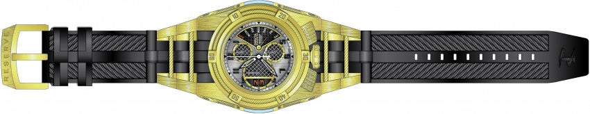 Band For Men Invicta Bolt 16320, Band Material Stainless Steel, Polyurethane, Band Color Black, Gold, Band Width 38 MM, Band Length 210 MM, Buckle Type Regular, Clasp Type Regular. Please note that bands do not ship with spring bars or T bars. If you need these parts, please add them to your cart with the corresponding part sku.