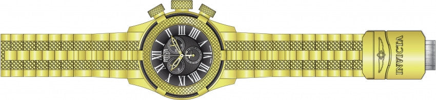 Band For Men Invicta Bolt 17165, Band Material Stainless Steel, Band Color Gold, Band Width 26 MM, Band Length 210 MM, Buckle Type Diver, Clasp Type Deployment, Safety. Please note that bands do not ship with spring bars or T bars. If you need these parts, please add them to your cart with the corresponding part sku.