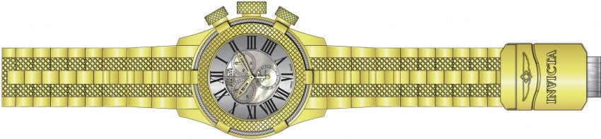 Band For Men Invicta Bolt 17432, Band Material Stainless Steel, Band Color Gold, Band Width 26 MM, Band Length 210 MM, Buckle Type Diver, Clasp Type Deployment, Safety. Please note that bands do not ship with spring bars or T bars. If you need these parts, please add them to your cart with the corresponding part sku.