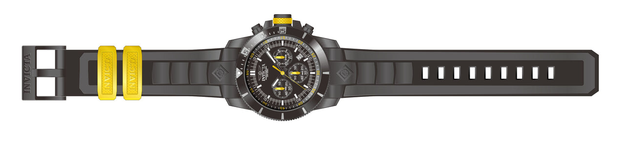 Band For Invicta Pro Diver 11748, Band Material Silicone, Band Color Black, Yellow, Band Width 24 MM, Band Length 230 MM, Buckle Type Buckle, Clasp Type Buckle. Please note that bands do not ship with spring bars or T bars. If you need these parts, please add them to your cart with the corresponding part sku.