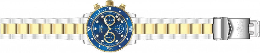 Band for Invicta Pro Diver 21892, Band Material: Stainless Steel, Band Color: Steel, Gold, Band Width: 22mm, Band Length: 210mm, Buckle Type: Diver, Clasp Type: Foldover, Safety. Please note that bands do not ship with spring bars or T bars. If you need these parts, please add them to your cart with the corresponding part sku.