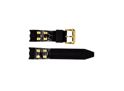 Band For Men Invicta Pro Diver 6981, Band Material Polyurethane, Stainless Steel, Band Color Black, Gold, Band Width 26 MM, Band Length 240 MM, Buckle Type Regular, Clasp Type Regular. No Spring Bars. Please note that bands do not ship with spring bars or T bars. If you need these parts, please add them to your cart with the corresponding part sku.