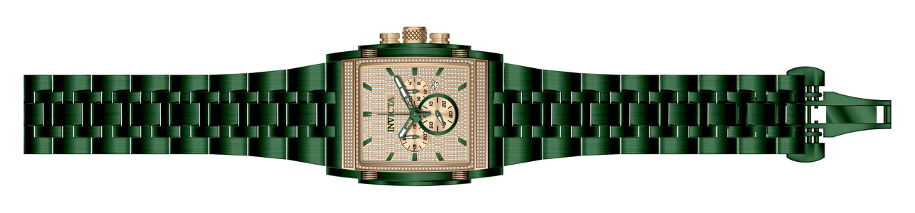 Band Material: Stainless Steel, Band Tone: Green, Band Size [mm]: 34, Band Length [mm]: 215, Buckle Type: Butterfly push button . Please note that bands do not ship with spring bars or T bars. If you need these parts, please add them to your cart with the corresponding part sku.
