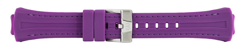 Band Material: Silicone, Band Tone: Purple with Stitching and White Back, Band Size: 15 mm, Band Length: 183mm, Clasp Type: Buckle, Clasp Tone: Stainless Steel Please note that bands do not ship with spring bars or T bars. If you need these parts, please add them to your cart with the corresponding part sku.
