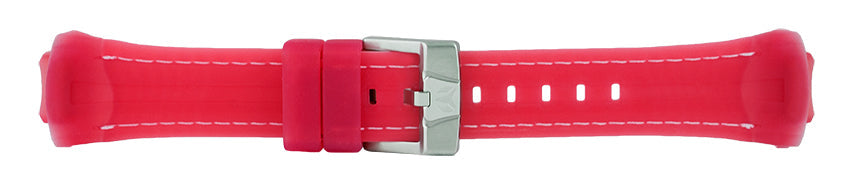 Band Material: Silicone, Band Tone: Transparent Pink with White Back and Stitching, Band Size: 15 mm, Band Length: 183mm, Clasp Type: Buckle, Clasp Tone: Stainless Steel Please note that bands do not ship with spring bars or T bars. If you need these parts, please add them to your cart with the corresponding part sku.