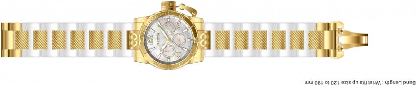 Band For Lady Invicta Corduba 1700, Band Material Stainless Steel, Polyurethane, Band Color Gold, White, Band Width 22 MM, Band Length 190 MM, Buckle Type Butterfly, Clasp Type Deployment, Push Button. Please note that bands do not ship with spring bars or T bars. If you need these parts, please add them to your cart with the corresponding part sku.